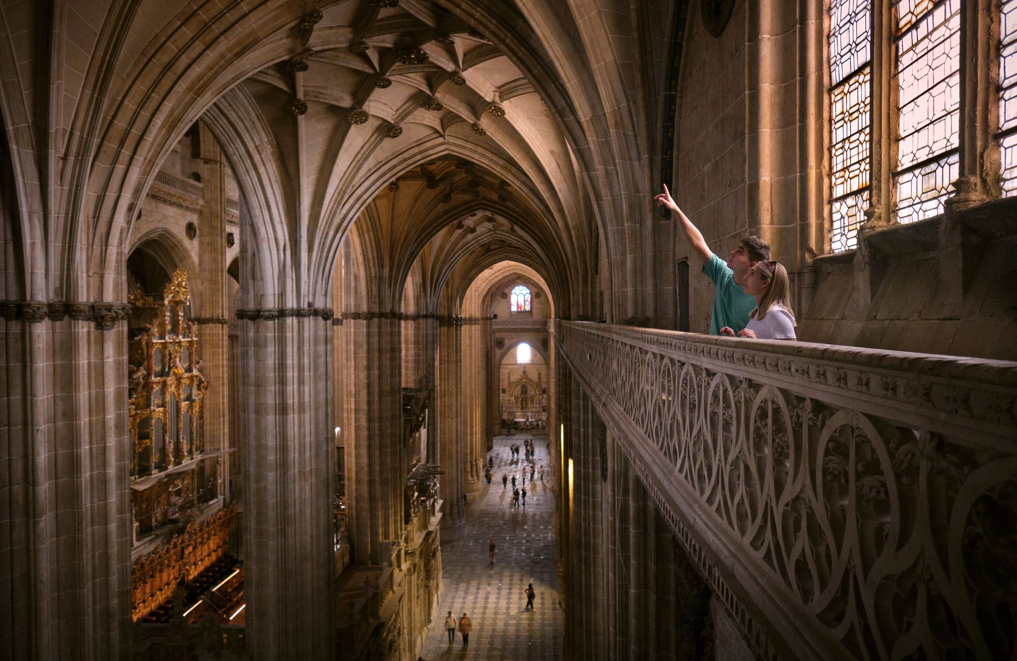 Desde una pasarela con aforo limitado a 30 personas, se contempla un paisaje constructivo excepcional: la estructura interior de la Catedral, sus entramados, sus secretos técnicos.